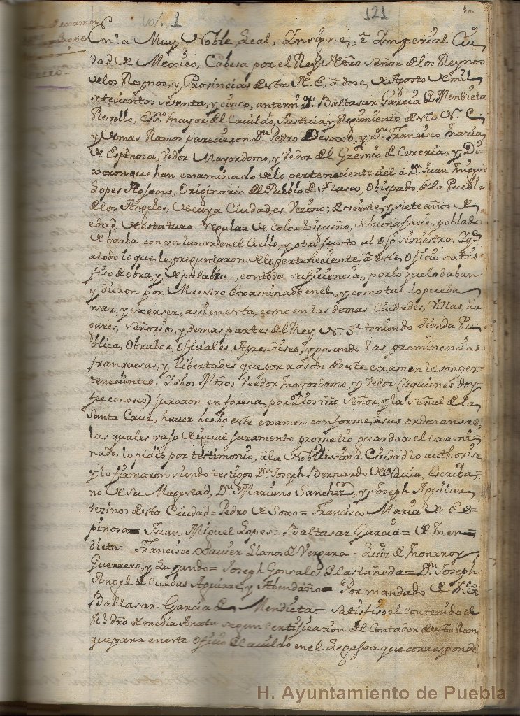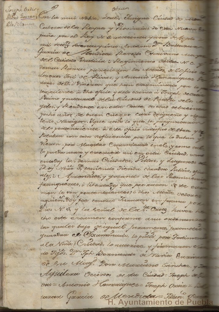 La documentación contiene las cartas de los exámenes de cereros, pasamaneros y zurradores, así como el traslado de las ordenanzas de los gremios de carpinteros, molineros, confiteros, herradores, zapateros, ensambladores, escultores, entalladores, loceros, tejedores de seda y algodón, cereros, silleros y sombrereros, expedidas en México y Puebla. Contiene también traslados de las reales cédulas que validan las ordenanzas y traslados de los exámenes de carpinteros.