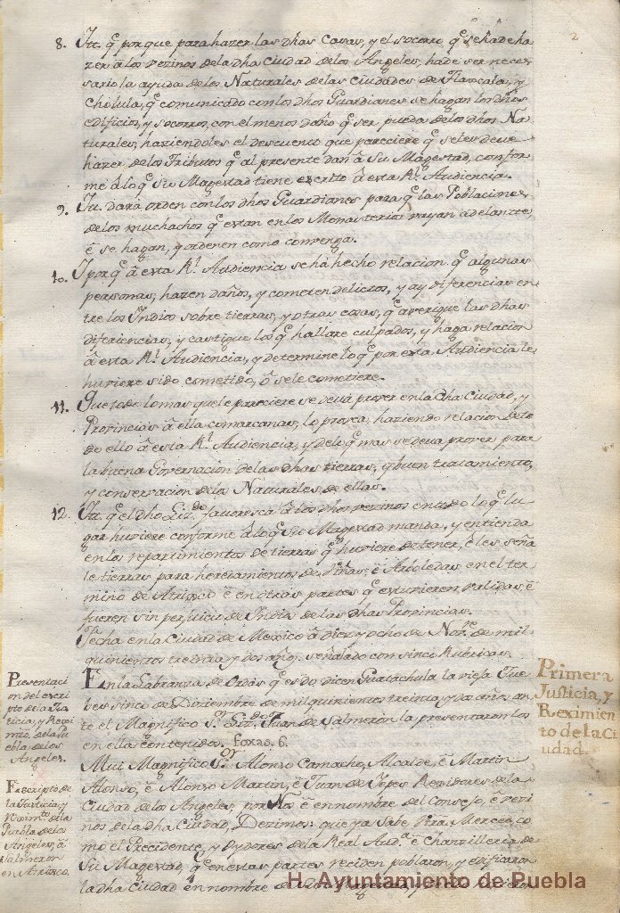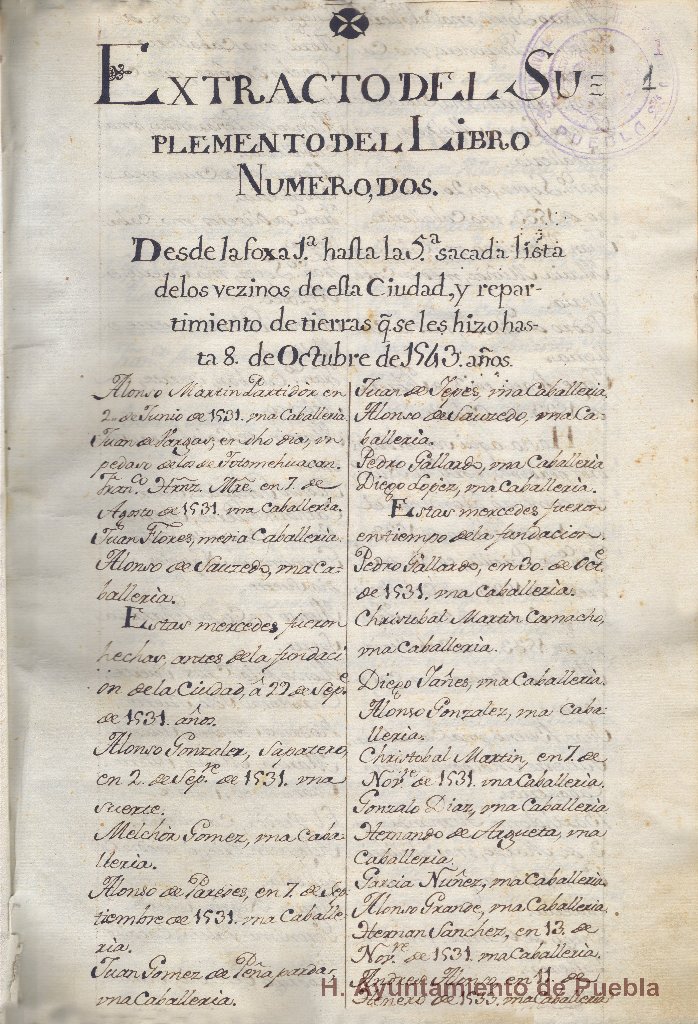 Posteriormente habla de las principales advocaciones de la ciudad desde el siglo XVI al XVIII. Contiene información de los conventos de Santo Domingo, San Francisco, la Concepción, la Santísima Trinidad, el conflicto de los padres jesuitas con el obispo Palafox y Mendoza, así como temas referentes a las rentas de la ciudad: pedreras, canteras, alhóndiga, sobre la fundación de la Santa Iglesia Catedral, las fiestas de San Miguel, sobre las circunstancias de la fundación de la ciudad, nombramientos de procuradores, etc.