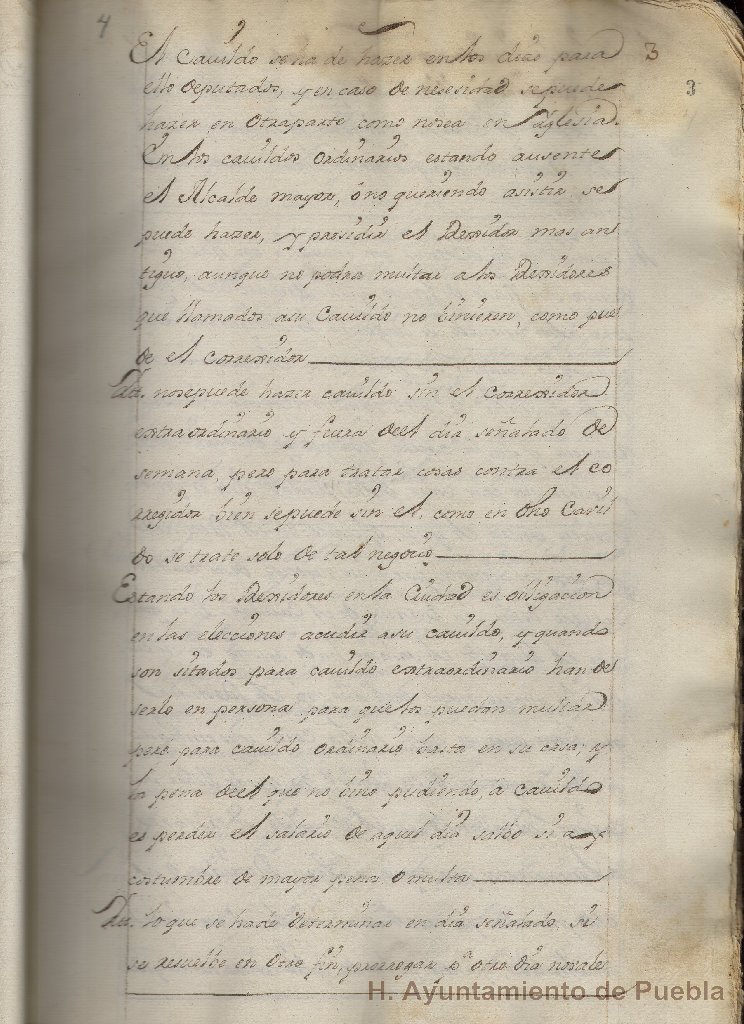 Se establece la forma en que se efectuarán las sesiones de cabildo y elecciones de sus diferentes integrantes, estipulando las penas y castigos de las que serían objeto los regidores cuando faltarán a sus responsabilidades