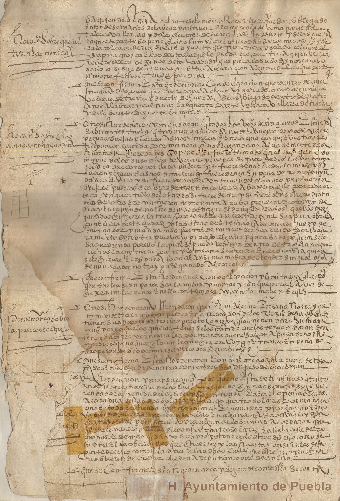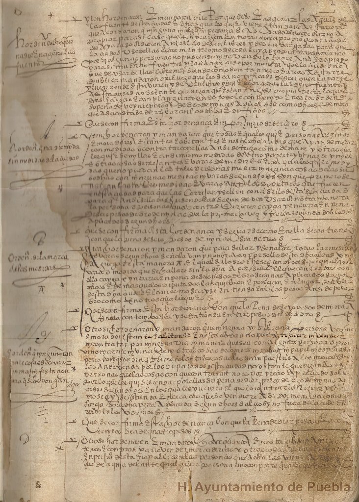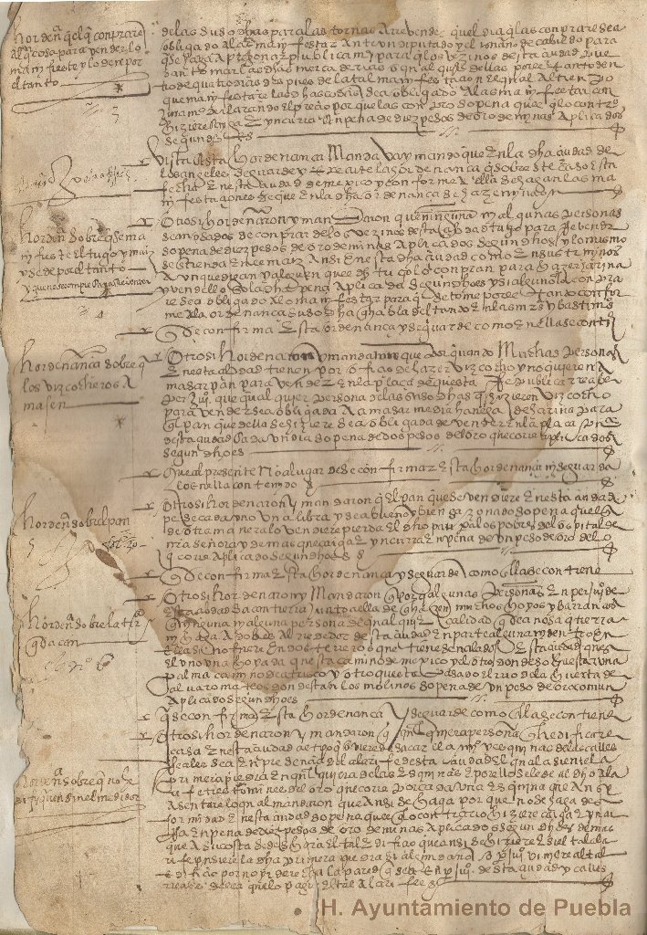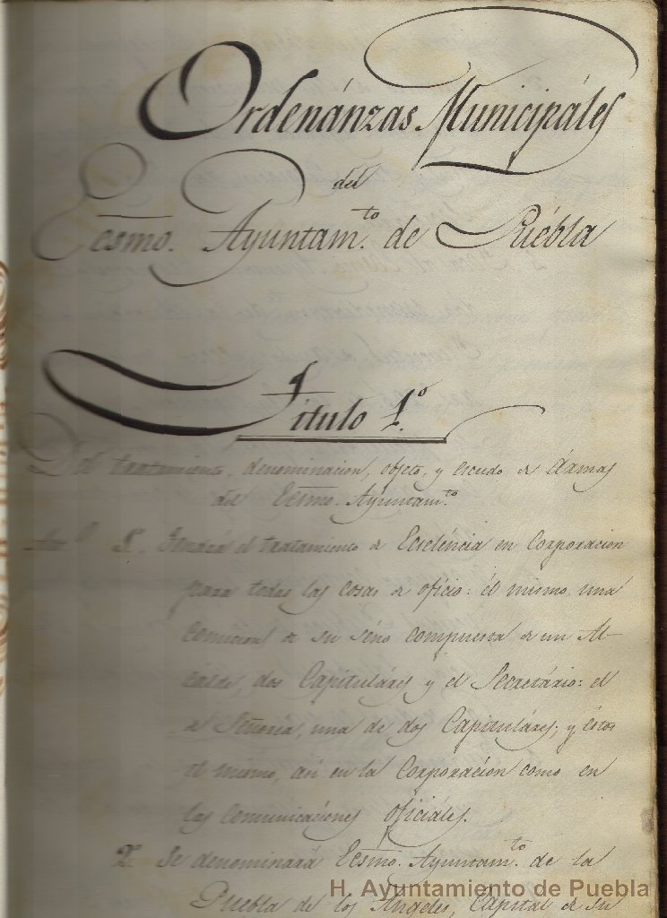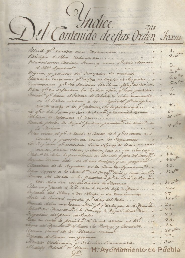 En los siglos XVI, XVII y a mediados del XVIII, fue una misión esencial del ayuntamiento angelopolitano elaborar ordenanzas y estatutos que determinaran amplios ámbitos de la vida económica y social de la nueva población, éstas eran un conjunto de normas y preceptos dirigidos al buen gobierno de la ciudad.