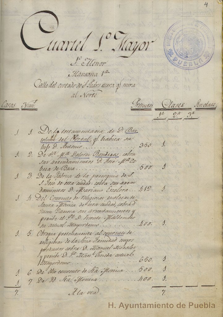 La serie la conforman diferentes tipos de censos y padrones de diversas épocas, basados en criterios diversos. Los del siglo XVIII contienen los siguientes datos: numeración progresiva, nombre, estado civil, nombre del cónyuge, nombre de los hijos; numerado de las casas, número de domicilio de la casa, nombre del propietario y arrendatario, producto (monto de la renta), clases: 1ª, 2ª, 3ª y sin clase; para el siglo XIX, se añaden padrones comerciales, especificando el giro comercial y la clase a que pertenecen: 1ª, 2ª, y 3ª; además se registra con números progresivos el nombre del propietario, número de casas, departamentos altos, departamentos bajos, piezas interiores, accesorias, agua potable, padrones de niños de ambos sexos, de varones mayores, padrón de defunciones, registro de sacerdotes, de nacimientos Y finalmente un censo general de los habitantes que están dentro del perímetro del Barrio de Xonaca, jurisdicción del municipio de Puebla.
