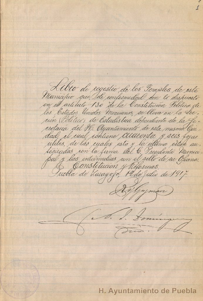 La constitución política de nuestro país establece en su artículo 130, debe haber en cada templo un encargado de él que se haga responsable ante la autoridad del cumplimiento de las leyes sobre disciplina religiosa y al mismo tiempo de los objetos pertenecientes al templo, éste avisará a la autoridad municipal, en este caso a la sección de Estadística dependiente de la Secretaría del H. Ayuntamiento, quién es la persona a cargo del templo. Dicha autoridad llevará un libro de registro de templos y otro de los encargados.