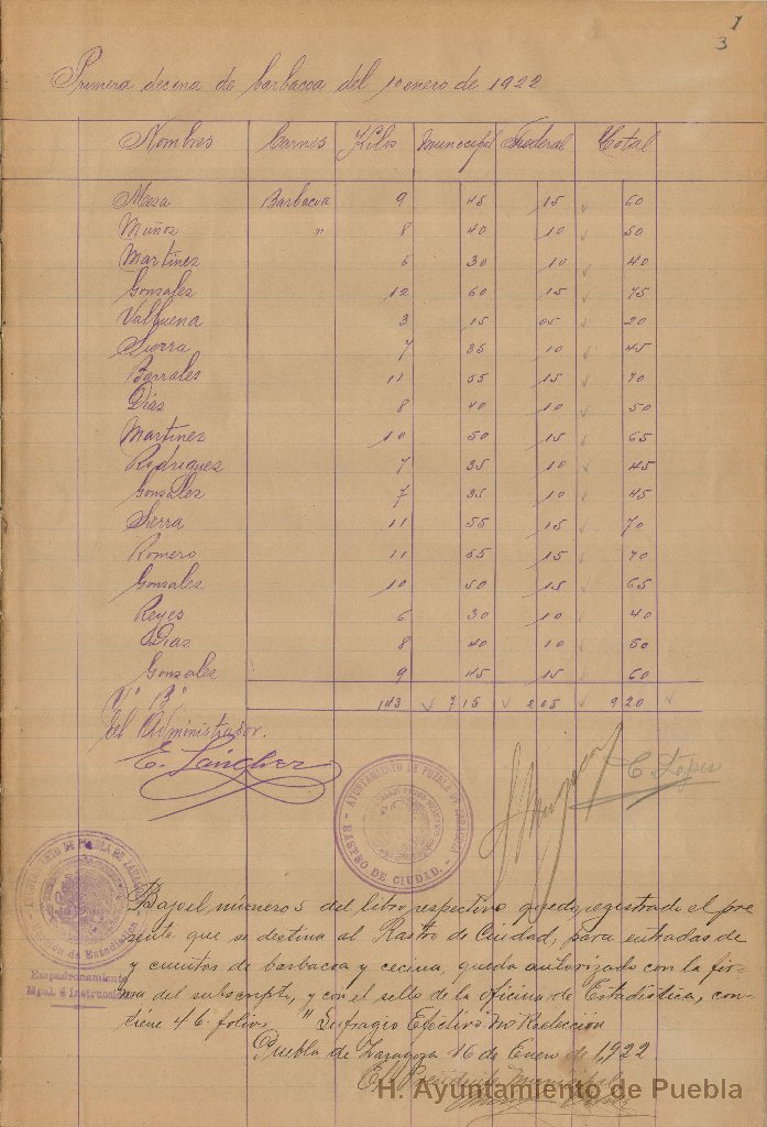 - Registro del rastro se trata de las entradas de cuentas de la barbacoa y cecina en 1922 y de entrada de reses, carneros y cerdos con los respectivos impuestos municipal y federal de 1931.