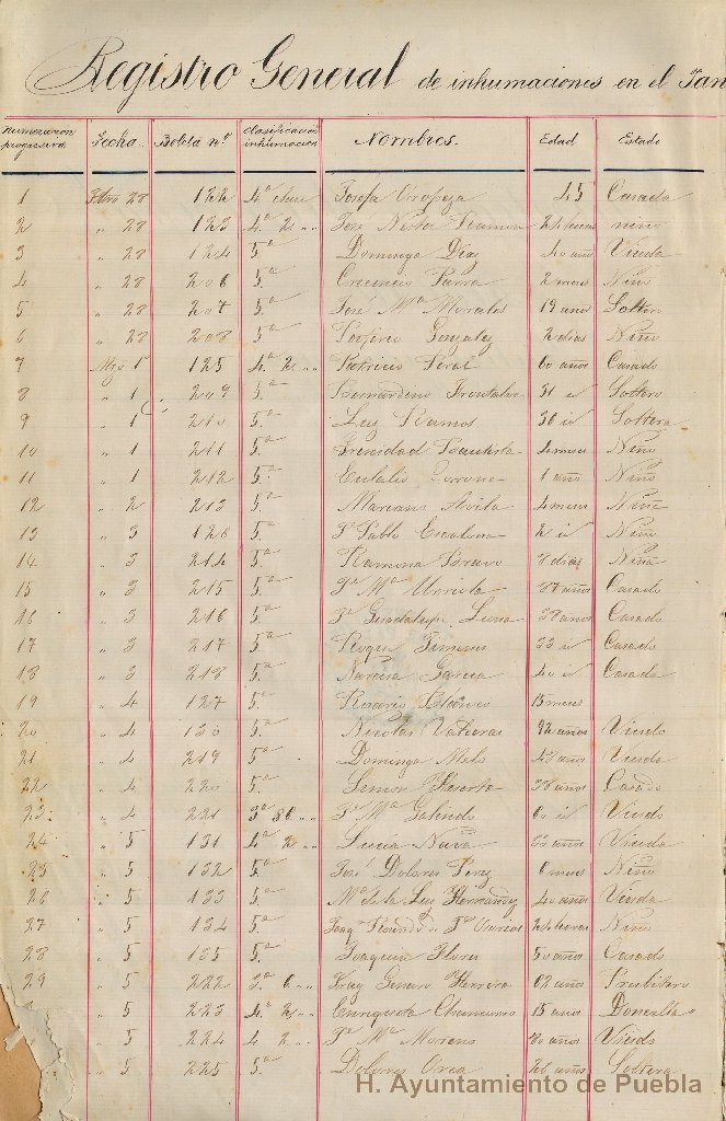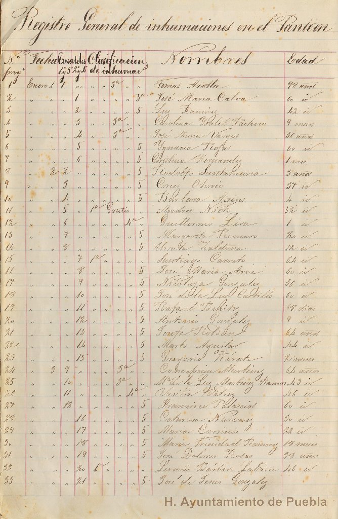 Se trata de los registrados realizados por el Panteón Municipal, constituido en el año de 1880,