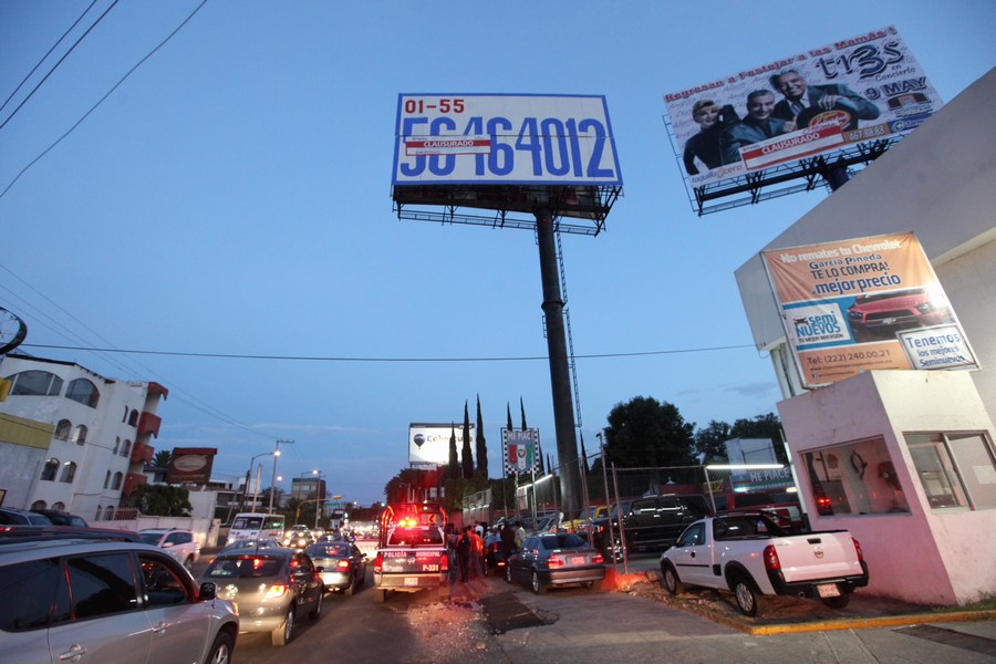 "Podemos ver la irregularidad de esta estructura espectacular, fue colocada sin permiso, anteriormente ya se ha realizado una clausura y se violaron sellos, volviendo a instalar la publicidad".