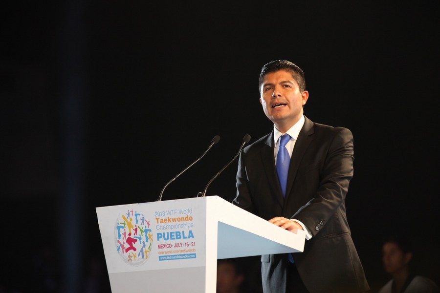 El Presidente Municipal de Puebla, Eduardo Rivera Pérez, en compañia del Gobernador del Estado, Rafael Moreno Valle, llevó a cabo la inauguración del Campeonato Mundial de Taekwondo Puebla 2013 que se llevará a cabo del 15 al 21 de julio con sede en el Centro Expositor.