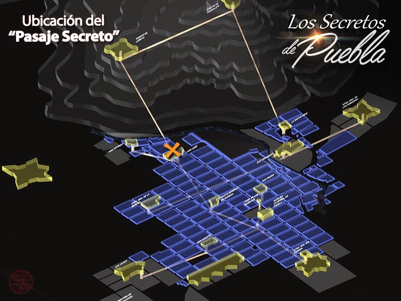 Este es el posible sistema de conexión de los Pasajes Secretos ubicados debajo de las calles de Puebla, que probablemente van desde Los Remedios, Los Fuertes, San Agustín y la ex Penitenciaria.